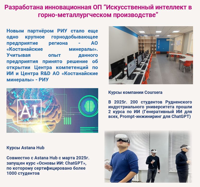 НАО “Рудненский индустриальный университет” активно внедряет технологии искусственного интеллекта для автоматизации образовательных процессов и повышения качества обучения. С 2025 года в университете реализуется программа разработки специализированных ИИ-агентов.